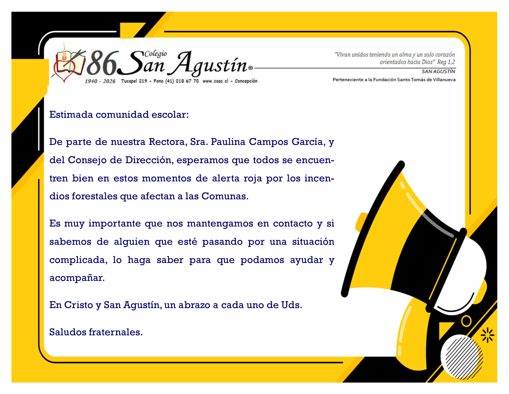 Fray Ayax Barruylle OSA, Director Pastoral del Colegio San Agustín de Concepción, comparte un saludo especial … Leer más »